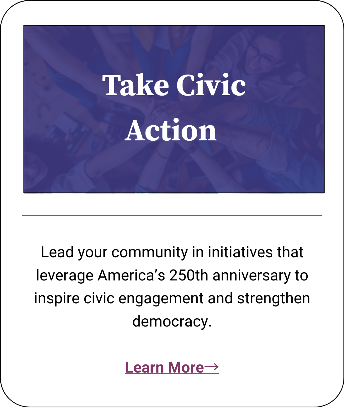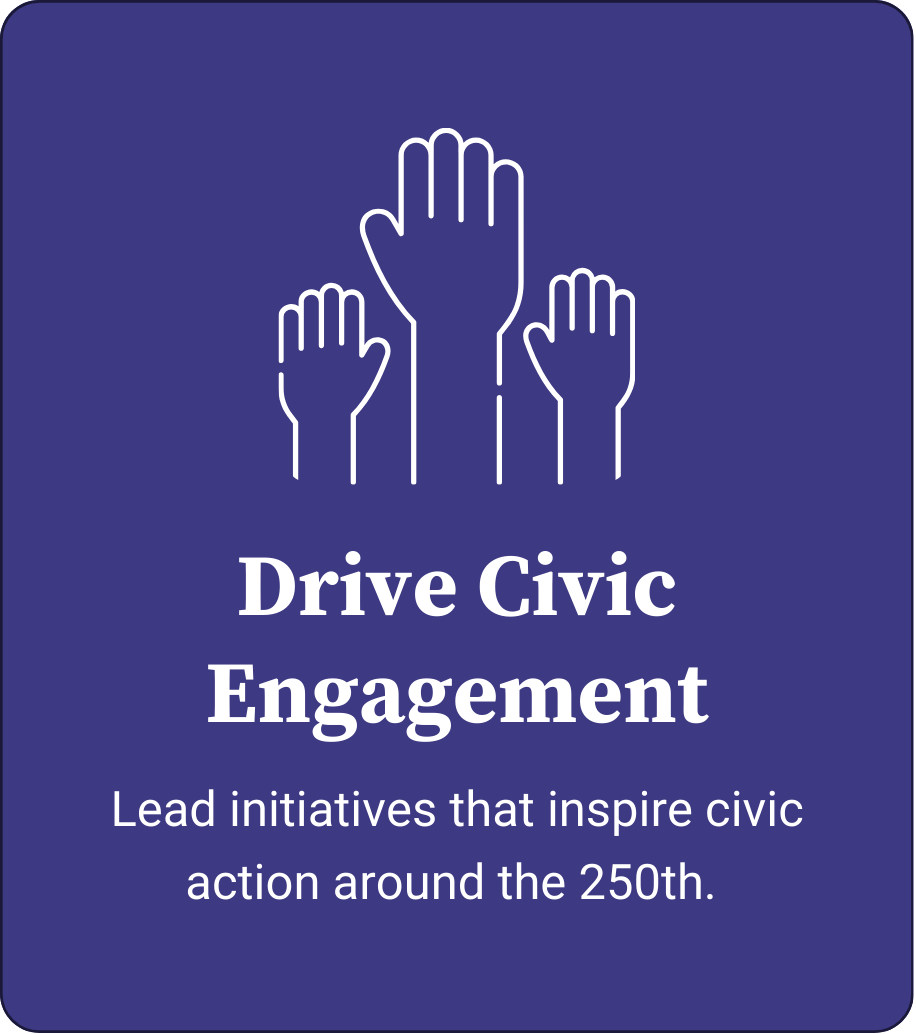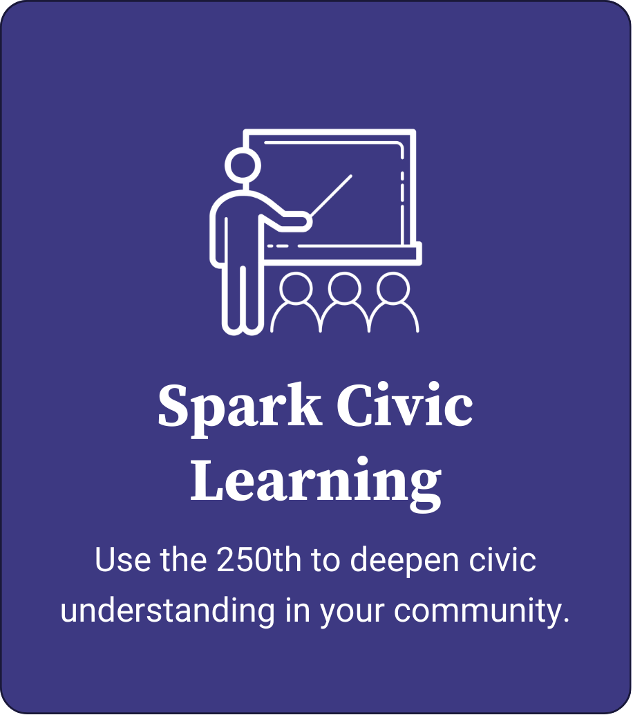 These grants are designed to support civic learning, relationship-building, and community-based initiatives that advance the goals of We the People at 250: